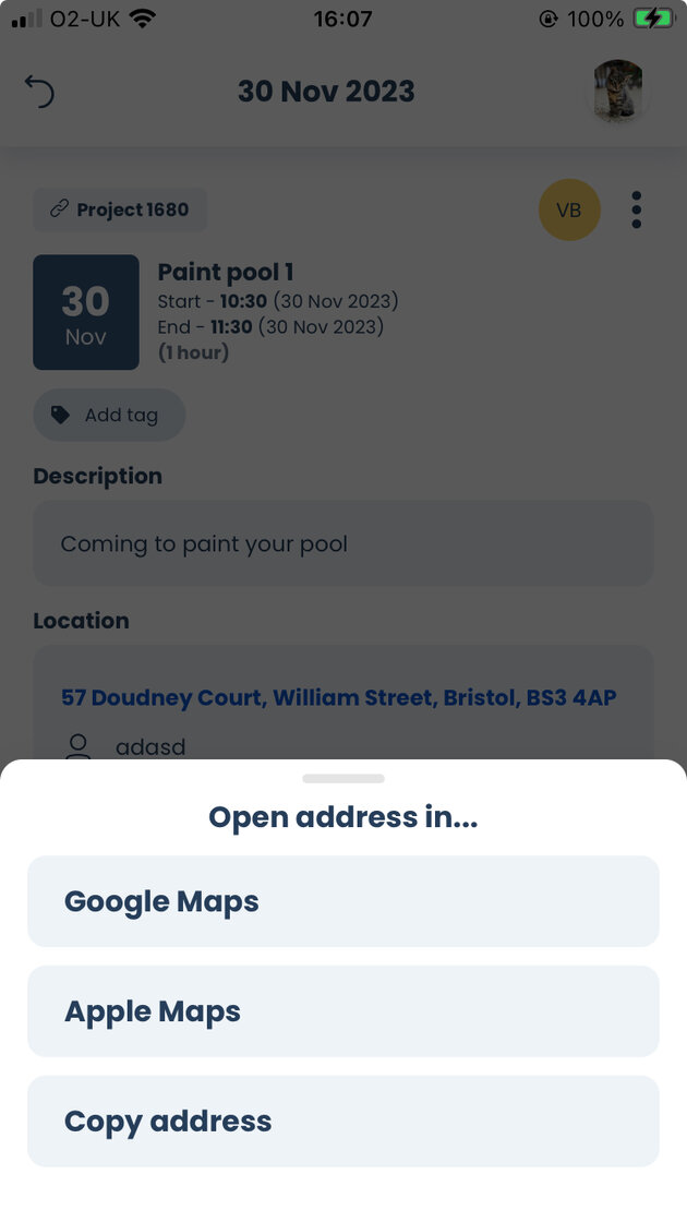 Locate your customer with more ease with this exciting update… You are no longer constrained to open an Event address in a specific app. Choose between Google Maps, Apple Maps (iphones) or copy the address into your favourite maps app.