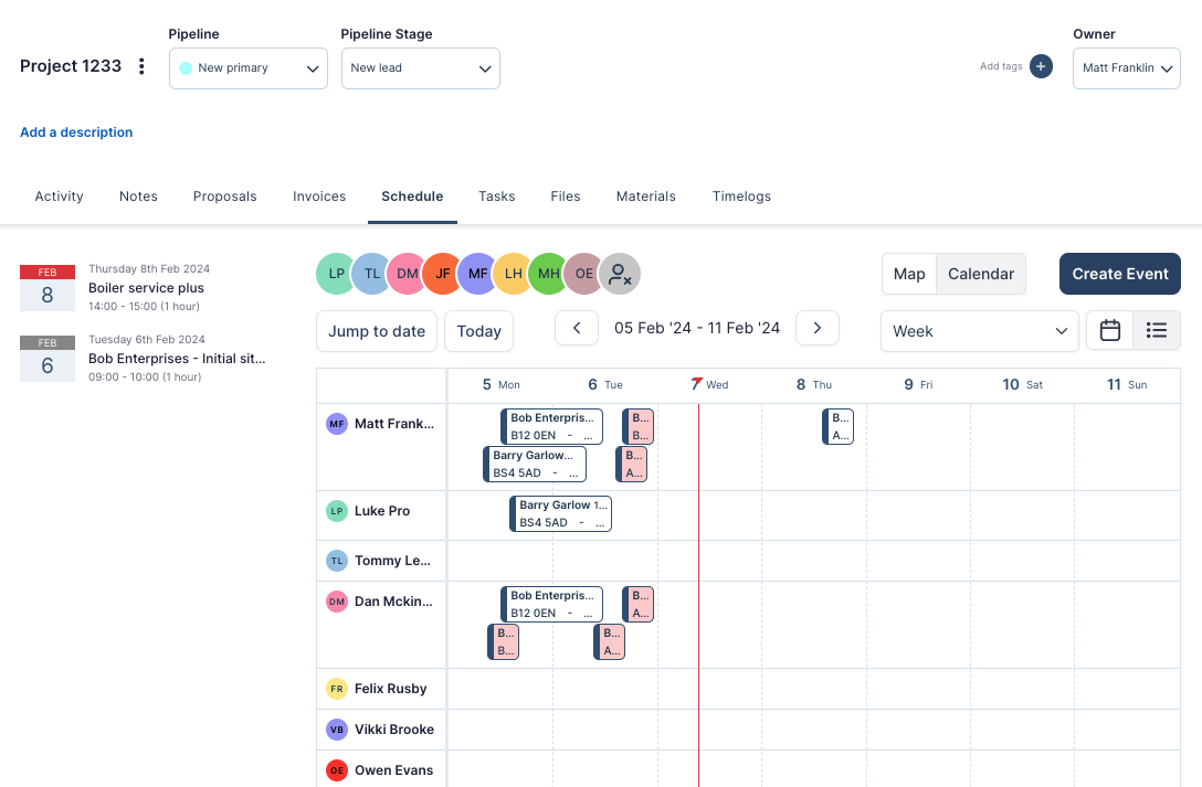 …And we updated the Schedule tab, so that you can see the calendar in user list mode. This means you'll be able to see which members of your team are available as you're booking in Project Events 📅