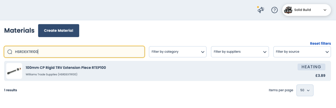 We've added the ability to search materials by the supplier reference.