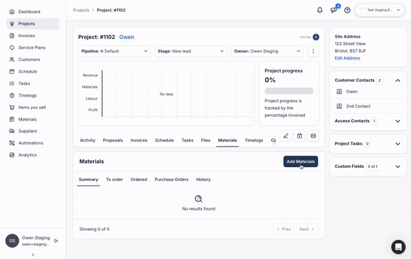 Our latest update is within the sidedraw when you add Materials to a Project.