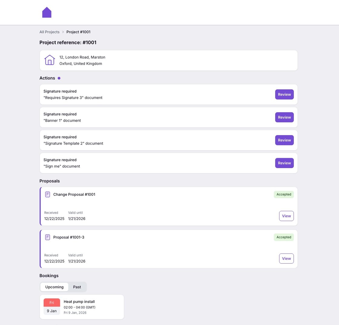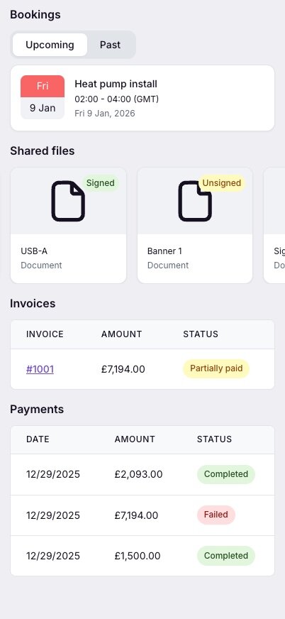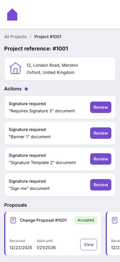 Actions banners - now appear automatically based on actions required by the customer. For example: