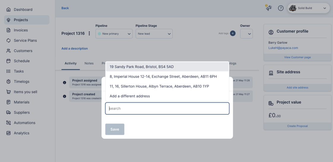 Martha HearnCurrently, you pick Project site addresses from a dropdown of your Customer's addresses.