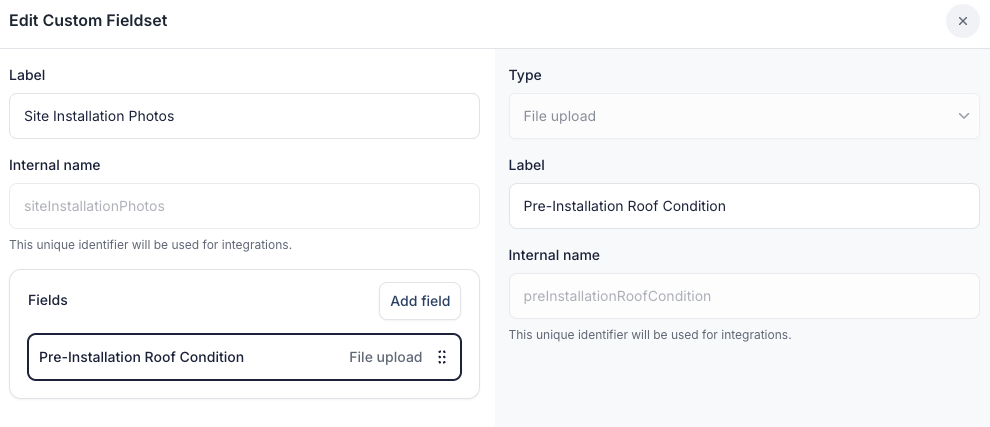 You can now add a “File upload” child field to a Custom Fieldset. This allows users to upload photos directly within the Project or Customer overviews, as well as from Responsive Form tasks in the field.