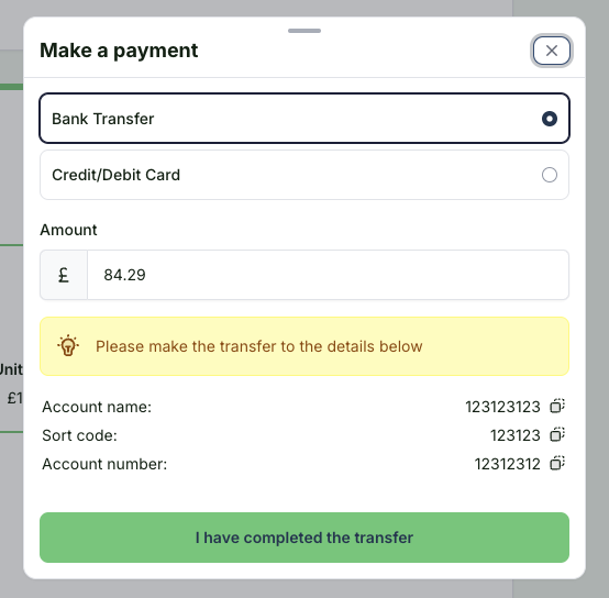 We’ve added a prompt to make it crystal clear to your customers that they need to complete a transfer for you to receive payment.