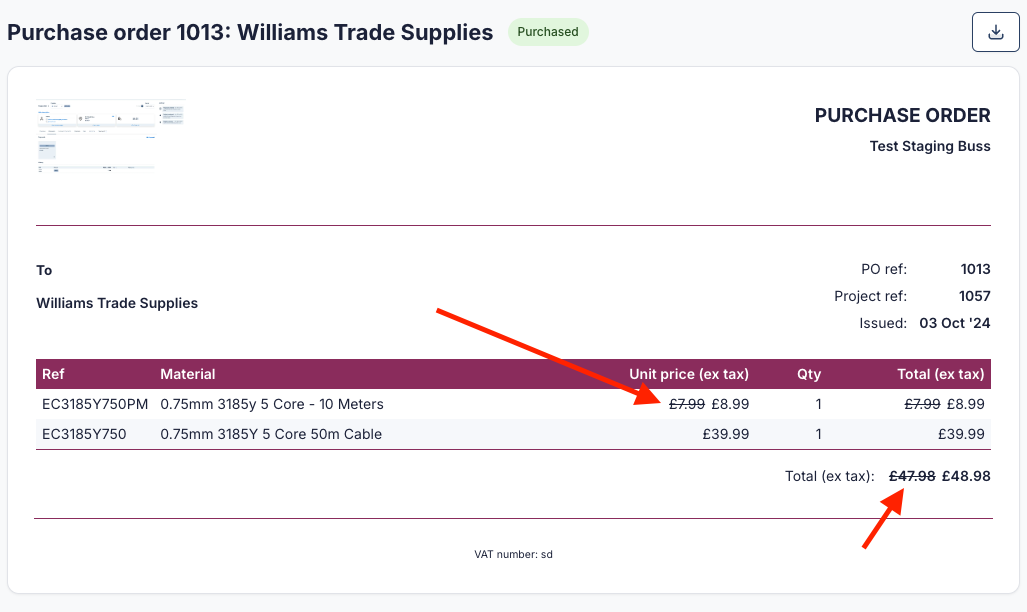 Owen EvansFor those showing item prices in your Purchase Orders: If the advertised price from your supplier differs from the final purchased price, this difference is now displayed on Purchase Orders!