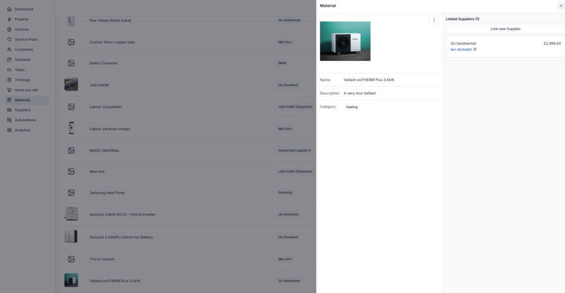 We’ve enhanced the Materials section for easier viewing of a Material and editing of it's linked Suppliers.
