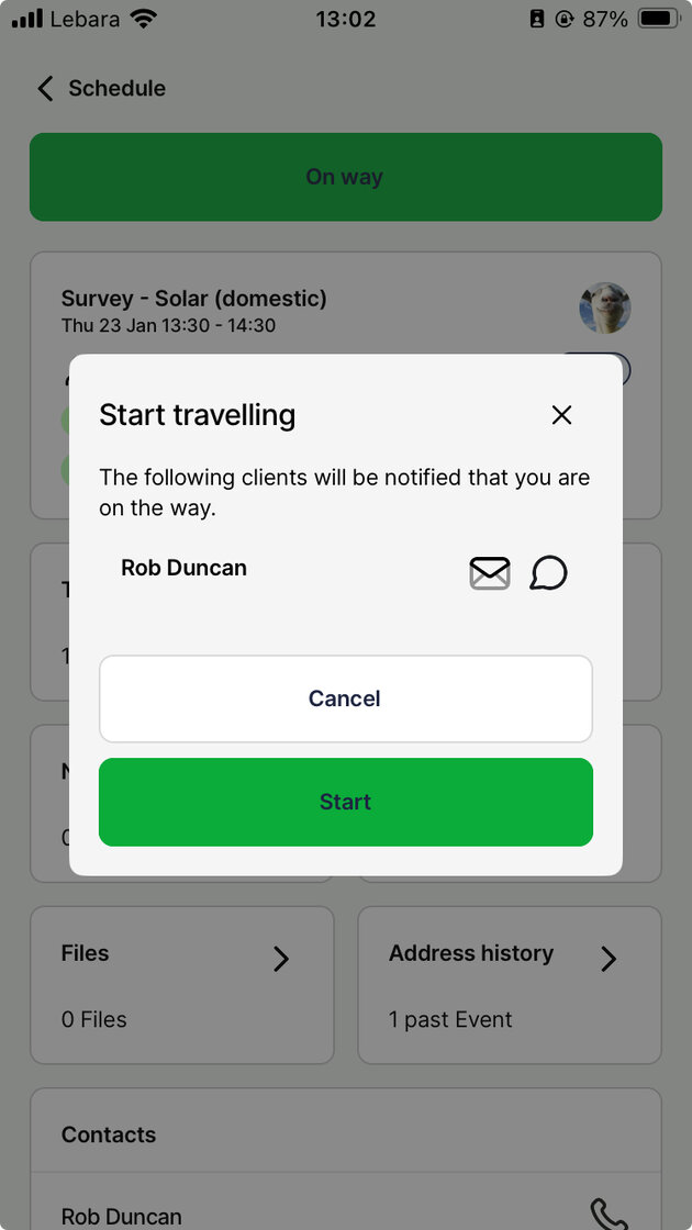 View notified contacts when starting travel 🚐